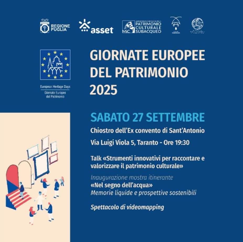 Si inaugura sabato 27 settembre alle 19,30 presso l’ex-convento di Sant’Antonio a Taranto, la mostra “NEL SEGNO DELL’ACQUA, memorie liquide e prospettive sostenibili”.
